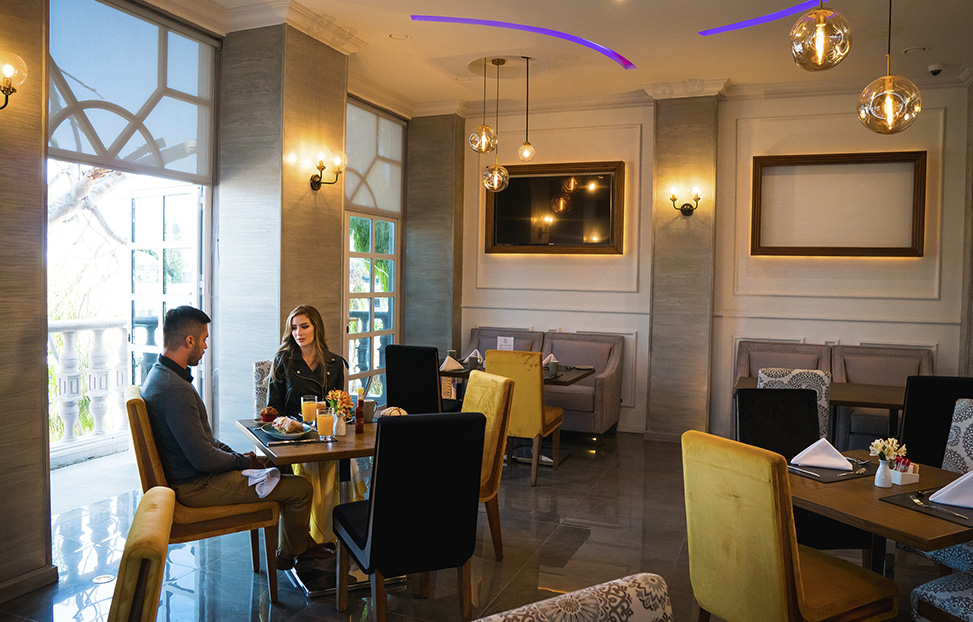 Comience bien el día con un abundante desayuno buffet y regrese para un almuerzo o cena con opciones deliciosas como pastas, tacos o ensaladas en nuestro restaurante Los Vitrales Select.
