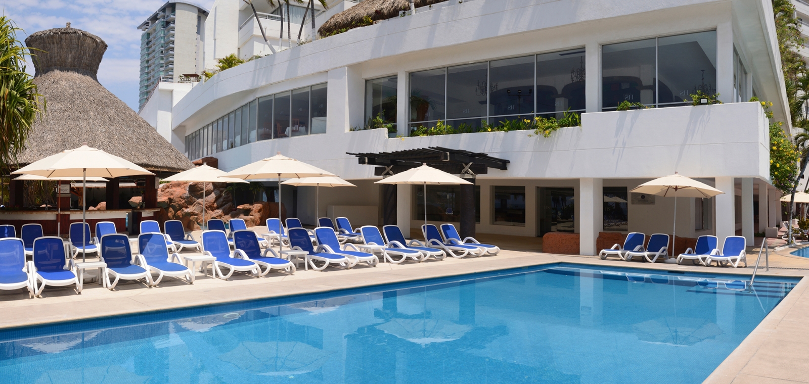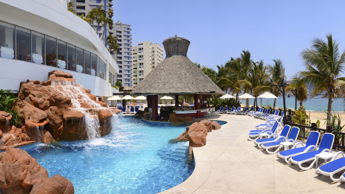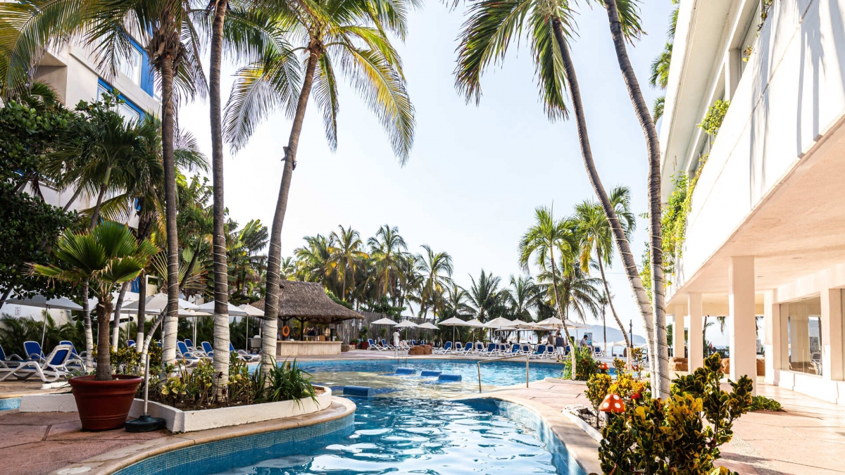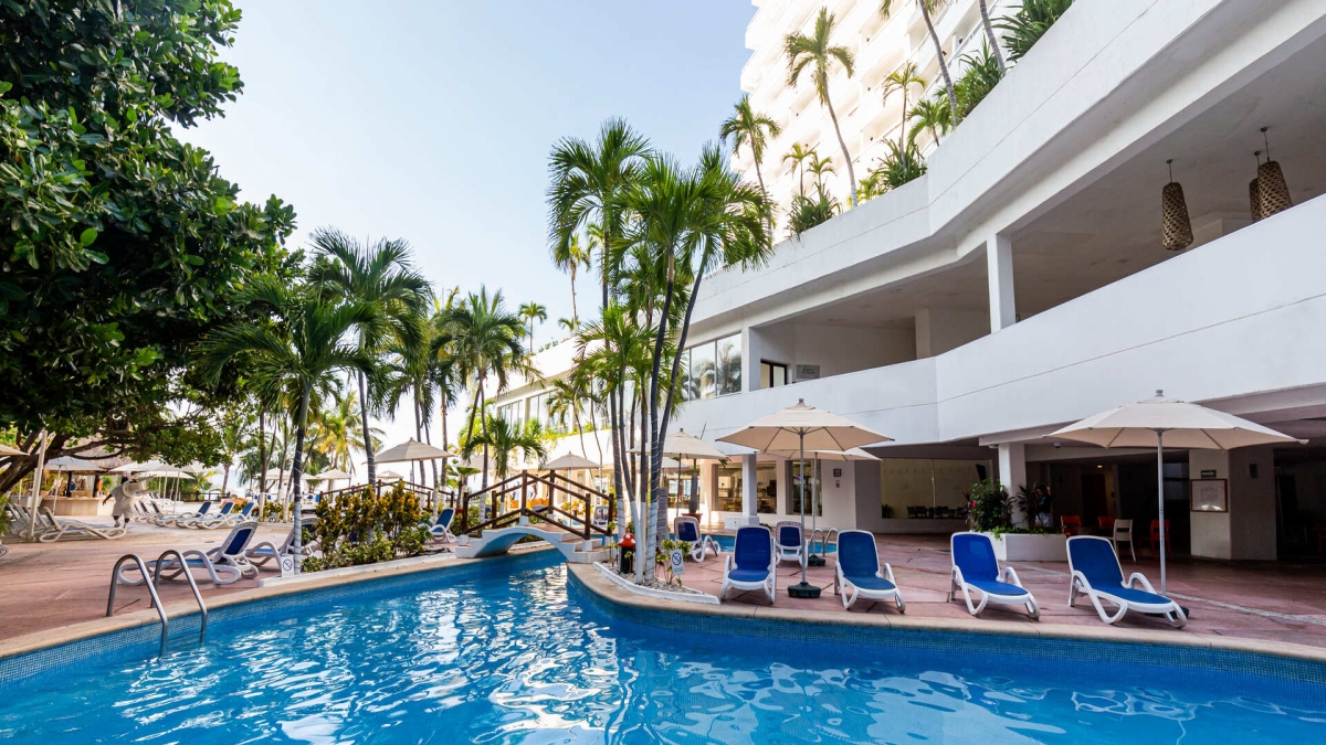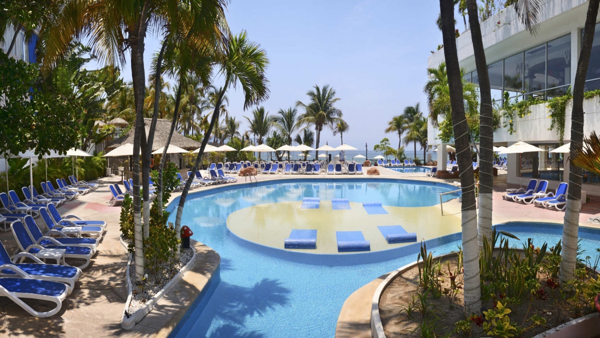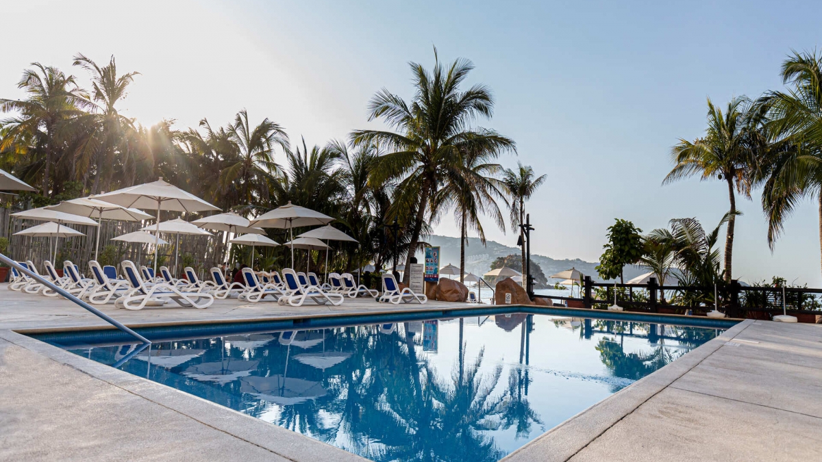 Relax and enjoy yourself at the pools, where you will find an entertaining program of activities.The main pool invites you to dive in for a swim following its unique outline. The small bridges add a charming touch to this area, while the water volleyball net increases the fun.Additionally, the area includes games and slides for children.Take a revitalizing sunbath next to our pools or enjoy your favorite beverage without leaving the water, in the pool located next to Coco’s Bar.Be amazed by the spectacular view from the pool* at the edge of the terrace on the second floor.*With extra charge.