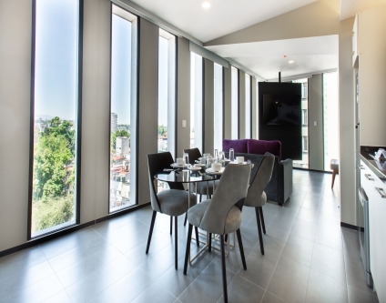 Feel the luxury and charm that this room offers in every detail, as it has a living area, a dining table for 4 people, and a television in the bedroom.