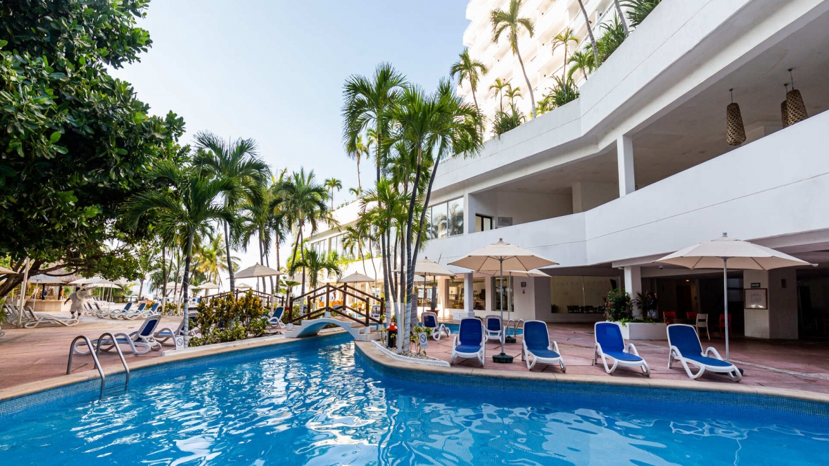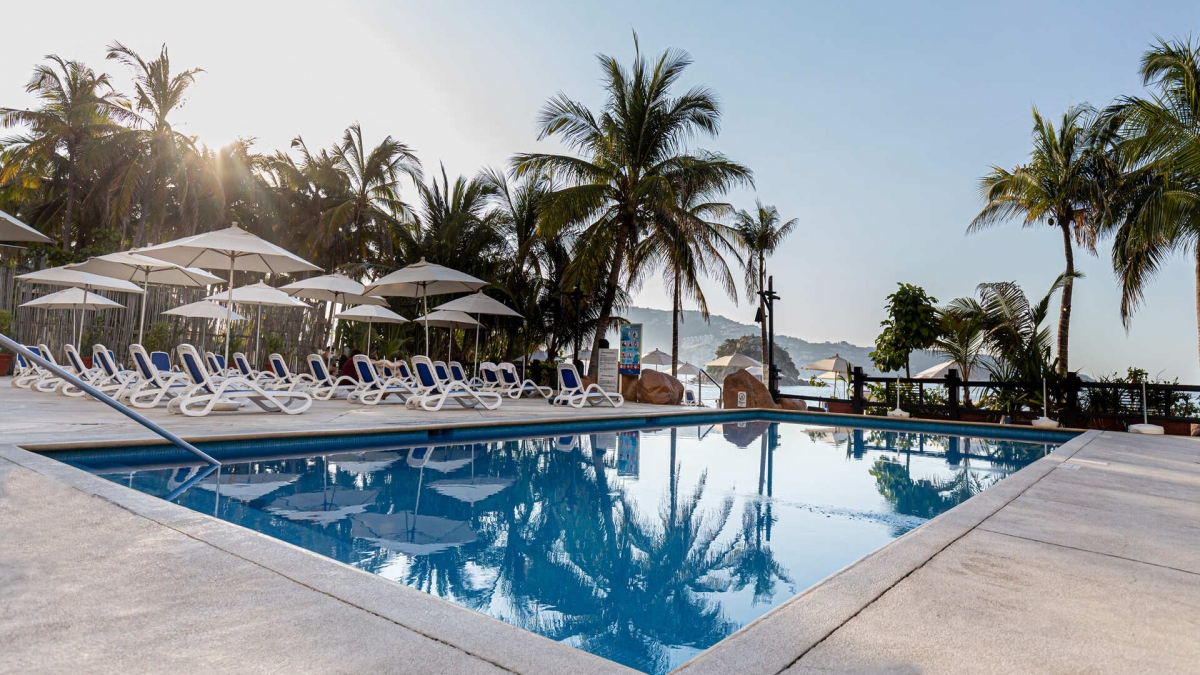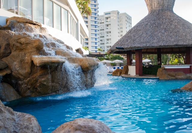 Relájese y diviértase con las albercas en las que encontrará un entretenido programa de actividades.La alberca principal lo invita a nadar por el agradable recorrido que crea su particular figura. Los pequeños puentes le agregan un toque encantador a esta área, mientras que la red para voleibol acuático incrementa la diversión. Tome un revitalizante baño de sol junto a otra de nuestras albercas o disfrute de su bebida favorita sin salir del agua en la piscina ubicada junto al Coco’s Bar.Aprecie la espectacular vista que le obsequia la alberca de Club Mirage*, construida al borde de la terraza ubicada en el segundo nivel.*Costo adicional.