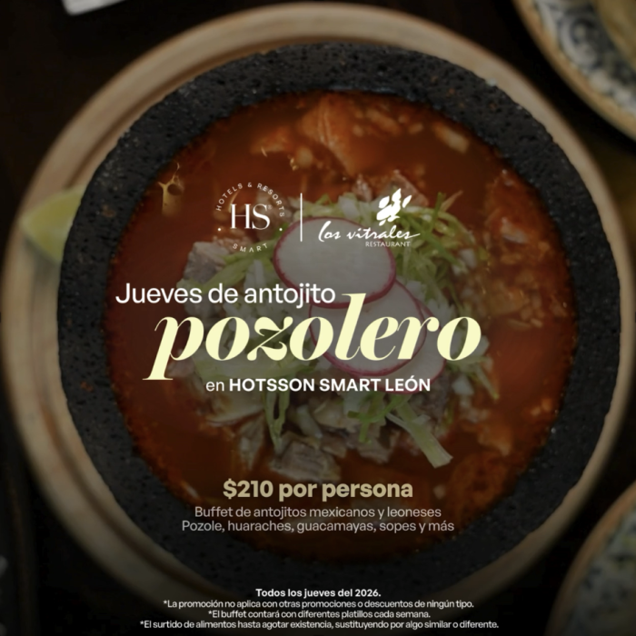 Jueves de Antojito Pozolero en Restaurante Los Vitrales. Disfrute buffet de antojitos mexicanos y leoneses con variedad de platillos tradicionales.|Precio $210 por persona, IVA incluido.|Horario de 18:00 a 22:00 h.|Todos los jueves de 2026.