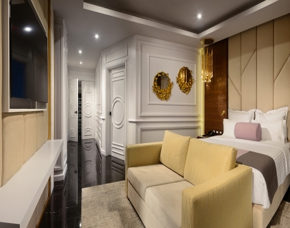 La elegancia y comodidad de esta suite le invita al disfrutar de una estancia amena, llena de descanso, relajación y lujo.